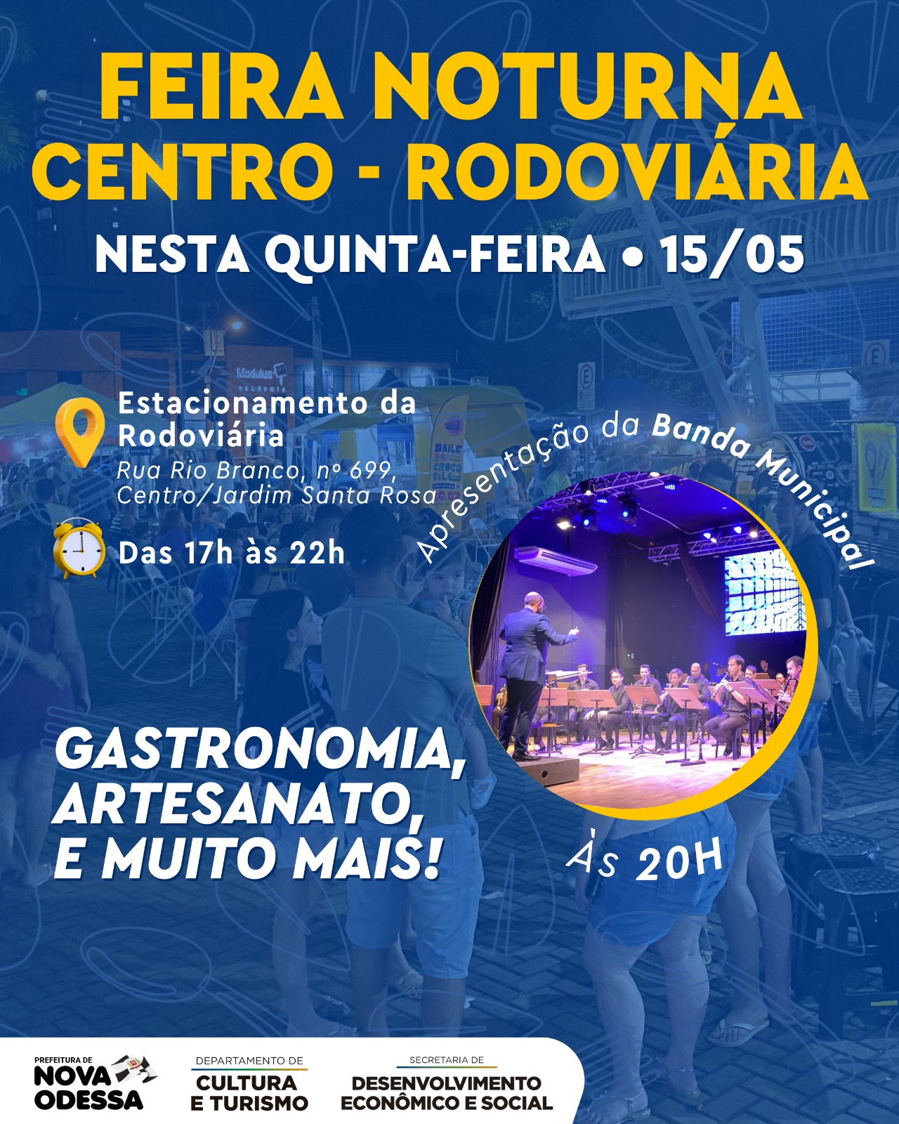 Banda Sinfônica de Nova Odessa se apresenta nesta 4ª e 5ª-feira nas Feiras Noturnas do Santa Luiza e da Rodoviária
