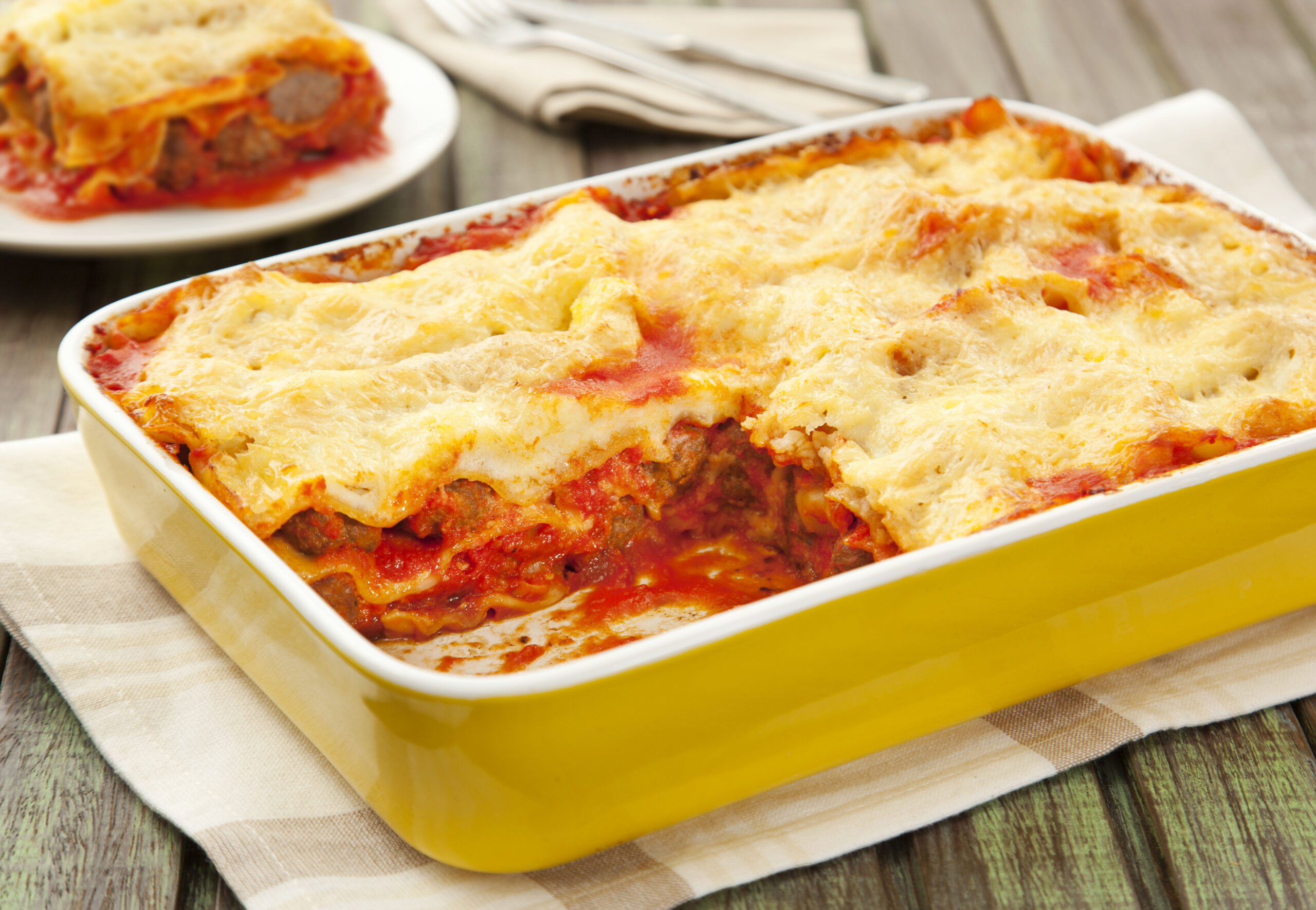Em uma assadeira retangular grande (30 cm x 45 cm x 7 cm de altura) espalhe um pouco do molho. Acomode uma camada de massa, fatias de muçarela e metade das porpetinhas. Repita o processo com o restante da massa e recheio, sendo a última camada de requeijão cremoso. Polvilhe o parmesão, cubra com papel- alumínio e leve ao forno médio (180 °C – 200 °C) por cerca de 40 minutos. Retire o papel-alumínio e volte ao forno por mais 10 minutos.