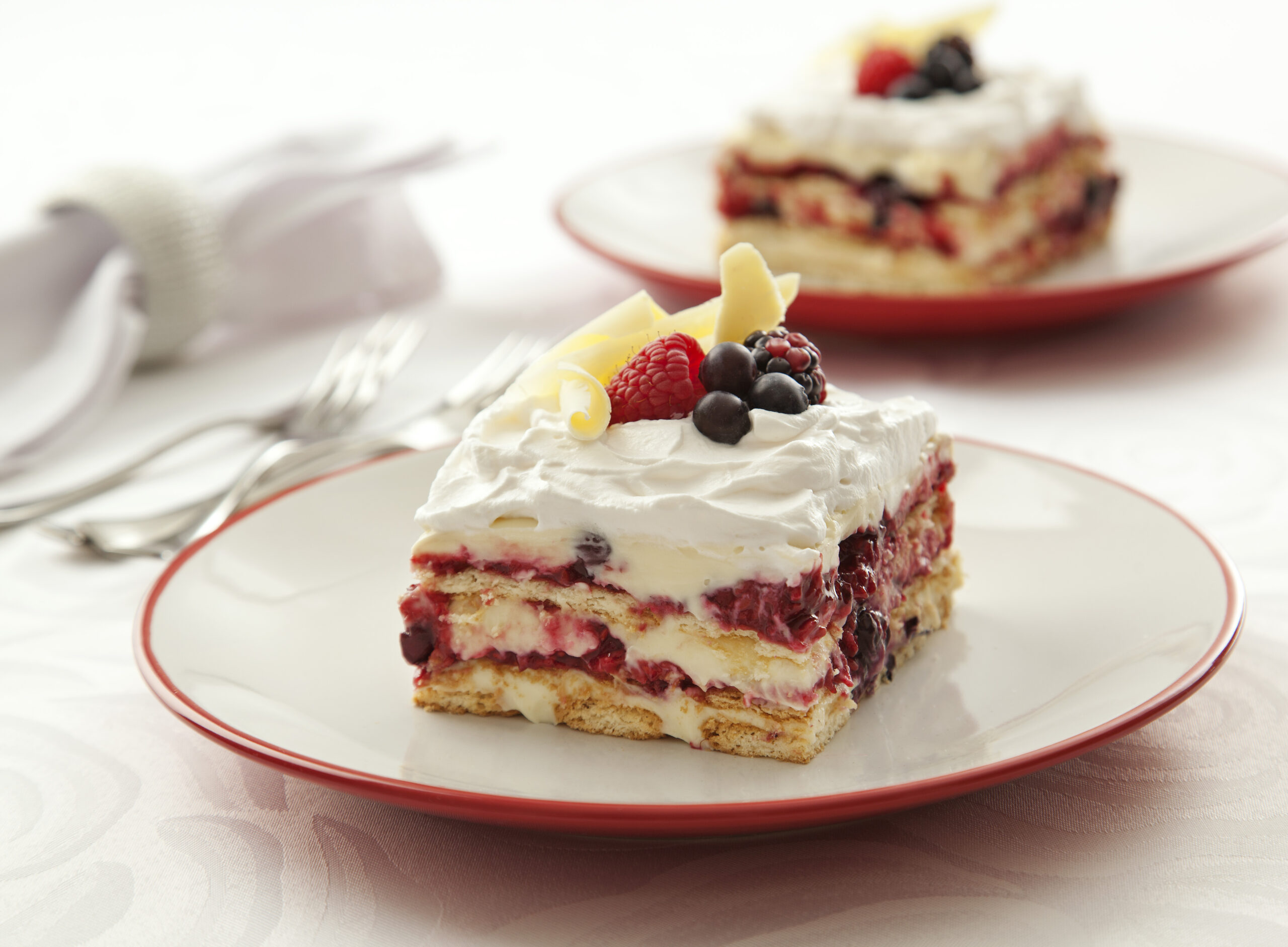 Pavê de Chocolate Branco com Champanhe e Frutas Vermelhas