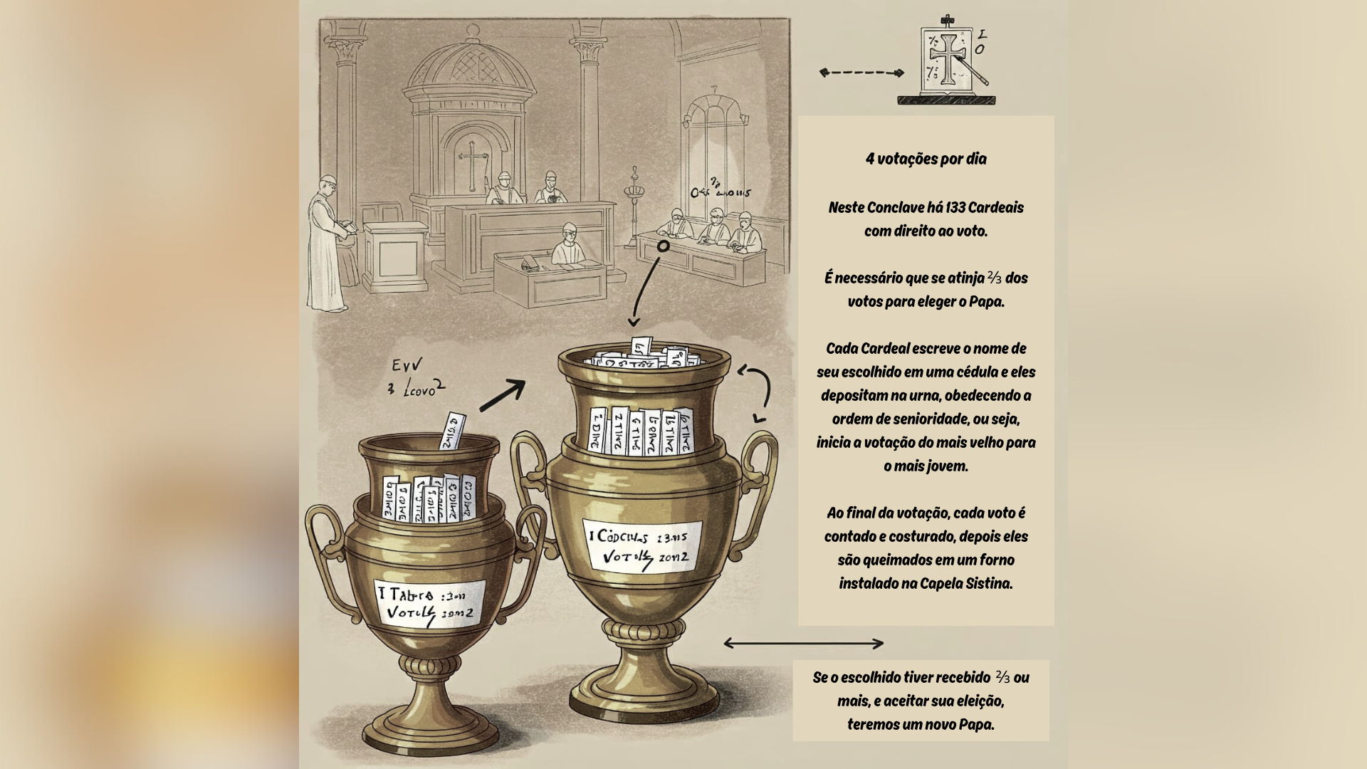 O conclave, procedimento formal de eleição do Pontífice, reúne os cardeais eleitores em regime de clausura na Capela Sistina, onde permanecem isolados do exterior até que um novo Papa seja escolhido.