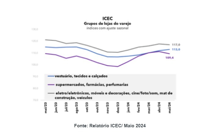 3 de junho de 2024O Índice de Confiança do Empresário do Comércio (Icec) recuou 0,2% em maio, após quatro meses consecutivos de alta. O índice é responsável por avaliar as condições atuais, as expectativas de curto prazo e as intenções de investimento dos negócios do setor. O apontamento foi feito pelo Portal do Comércio do SENAC, nesta sexta-feira (31).