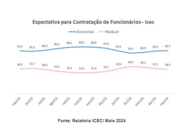 O item de maior evolução nos investimentos foi novamente a Intenção de Contratação de Funcionários, com 1,9%, indicada pelos consumidores na ICF de maio. A maior parte dos empresários busca aumentar seu quadro de empregados, que já marca 63,7%, o maior percentual do ano, o que mostra que os resultados positivos, observados no Cadastro Geral de Empregados e Desempregados do Ministério do Trabalho (Caged), devem continuar.